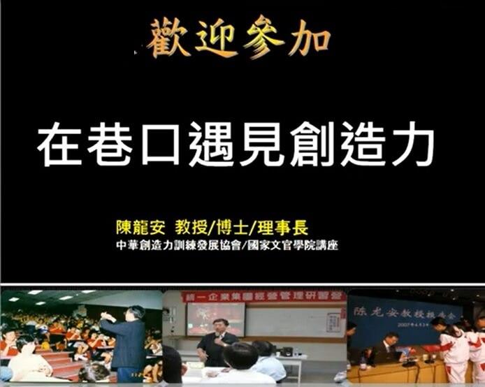 【線上學堂】【3Q創造力學堂】【3Q專家講堂】【陳龍安教授】~在巷口遇見創造力 ★ 點擊下方視訊,進入閱覽 在巷口遇見創造力__心法 外來未來已來本來 化不可能為可能 腦筋轉個彎 受與愛 創造思考歌 認知 創造力金鑰01 敏覺力 創造力金鑰02 流暢力 創造力金鑰03 變通力 創意的金鑰4 獨創力